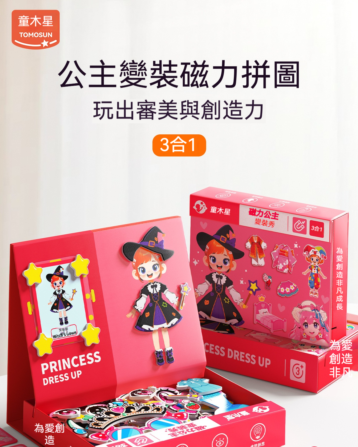 【換裝遊戲玩到停不下來!這盒磁力拼圖讓她當小小設計師】 公主變裝磁力拼圖|129顆磁力片 × 25種造型 × 三合一玩法